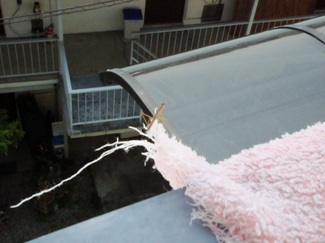 ベランダで野菜に水をあげてると!