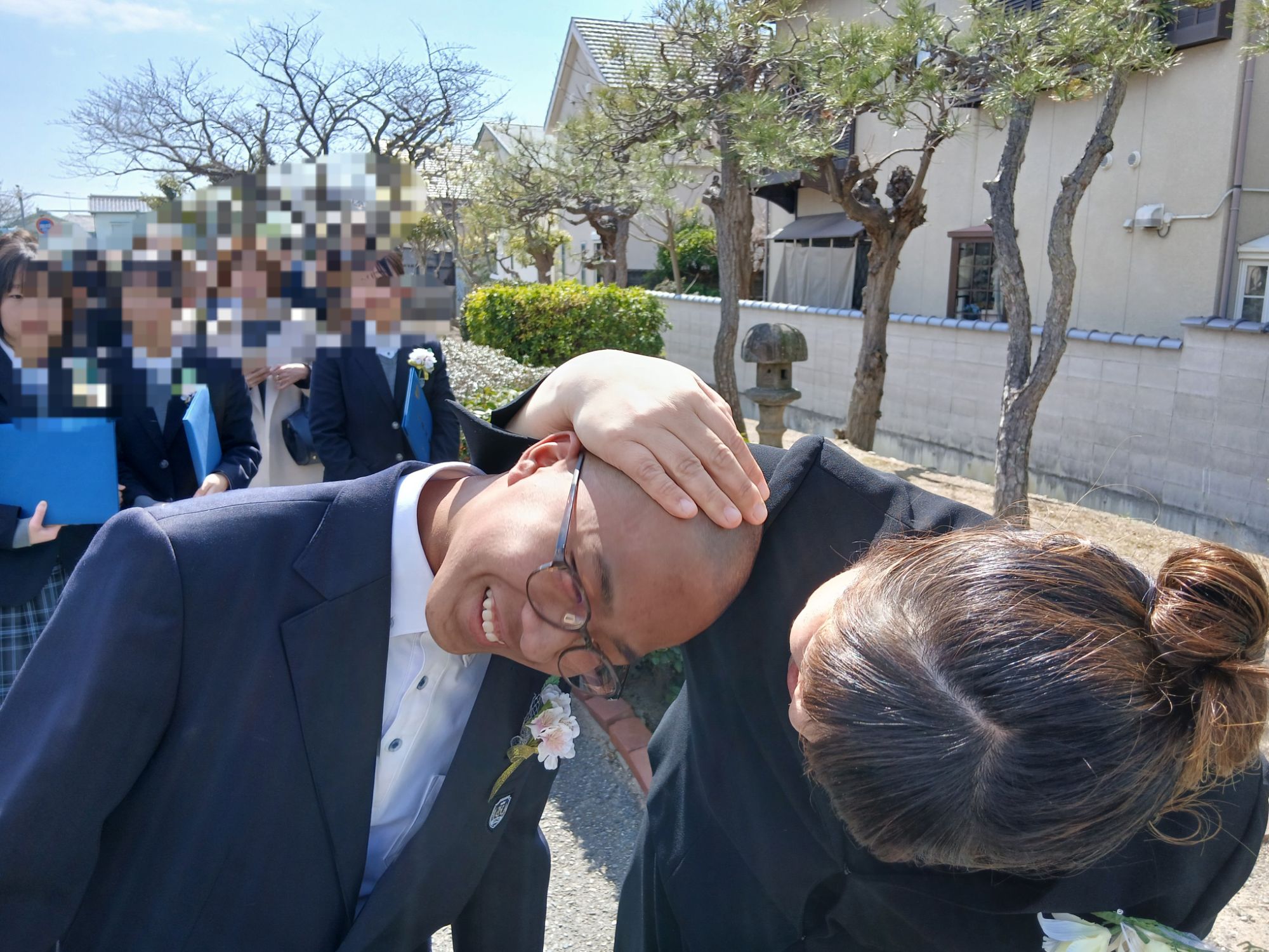 先生に頭をこねくりまわされ、喜ぶ息子!